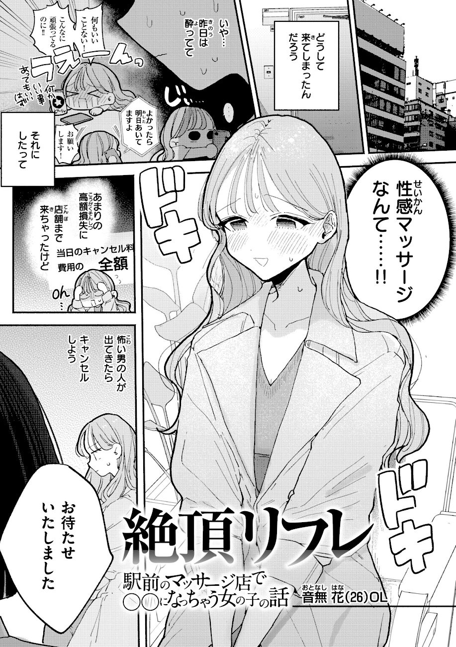 勢いで来てしまった性感マッサージ店。体験した事のない絶頂を何度も味わって……『絶頂リフレ 駅前の性感マッサージ店で○○になっちゃう女の子の話』