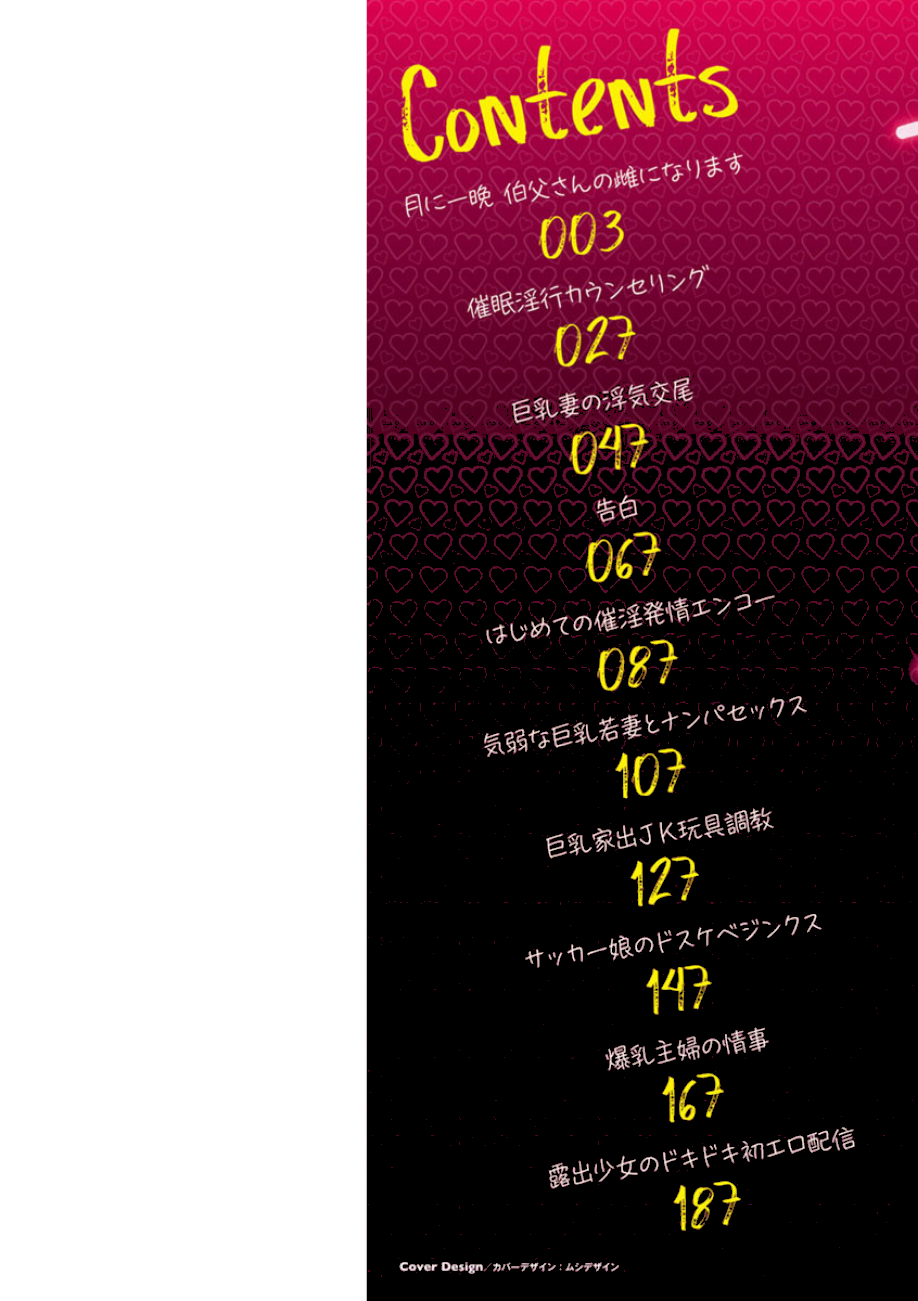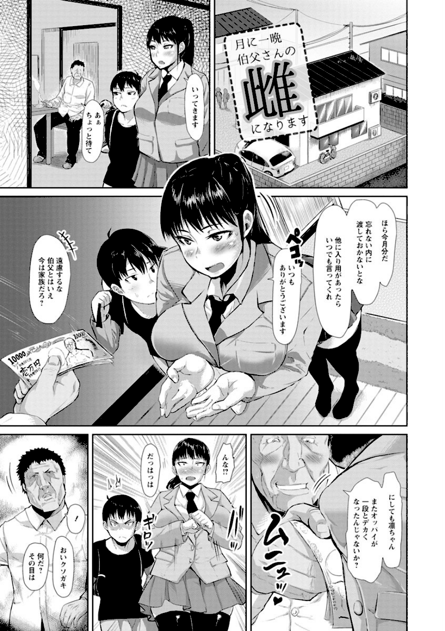 地味で目立たないのにオッパイだけは立派に育った実はエッチな女の子たち。まだ性の悦びを知らないうぶなボディを中年オジサンたちがねちっこ〜く、脂ギッシュに開発してゆく。「こんなキモオヤジに…!」と悔しがりながらも感じちゃう美少女&貞淑妻満載♪ 性竜初単行本! 【収録作品】爆乳主婦の情事/はじめての催淫発情エンコー/サッカー娘のドスケベジンクス/月に一晩伯父さんの雌になります/告白〜ごめんね。私先生のメスなの〜/巨乳家出JK玩具調教/催●淫行カウンセリング/露出少女のドキドキ初エロ配信/気弱な巨乳若妻とナンパセックス/巨乳妻浮気交尾〜媚薬で発情!寝取りセックス〜