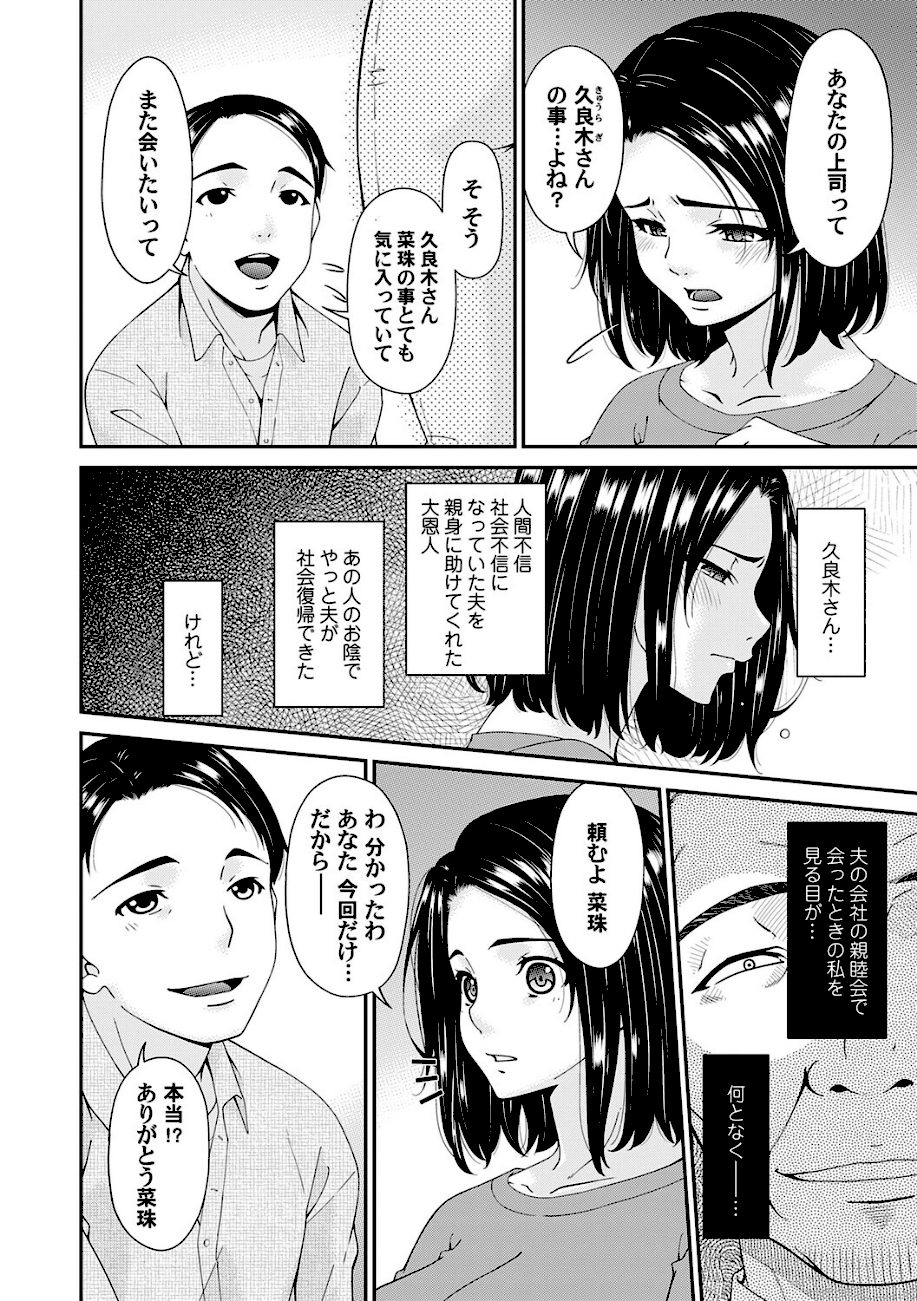 夫に懇願され、彼の上司・久良木(きゅうらぎ)とともにハプニングバーに行くことになった菜珠(なみ)。